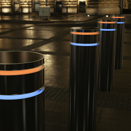 Sloan’s Lighted Bollards have a sleek brushed stainless steel design and the most versatile bollard lighting options available. Individual RGB LED light rings can change colors, fade, flash, or be programmed to a dynamic sequencing effect, all at the touch of a button. These are also the ultimate in crash protection with ASTM F2656-07 M50/P1 certification.
